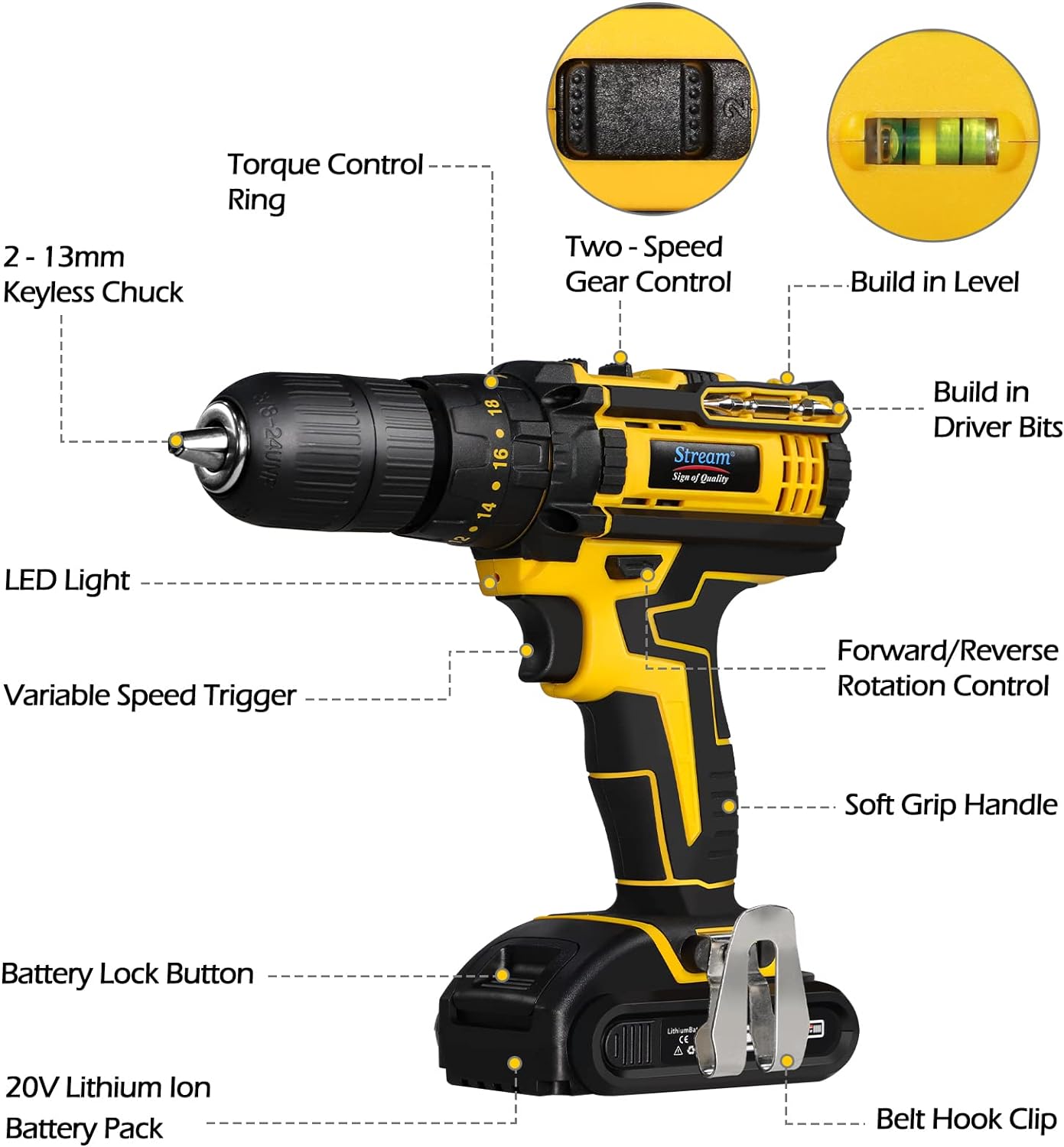 - 【2 Battery and Fast Charger】 The cordless drill has 2 2000mAh Li-ion batteries. Different from batteries with other false labeling capacity, the battery life of Stream electric diamonds is long. The battery has a charging indicator and a fast charger.