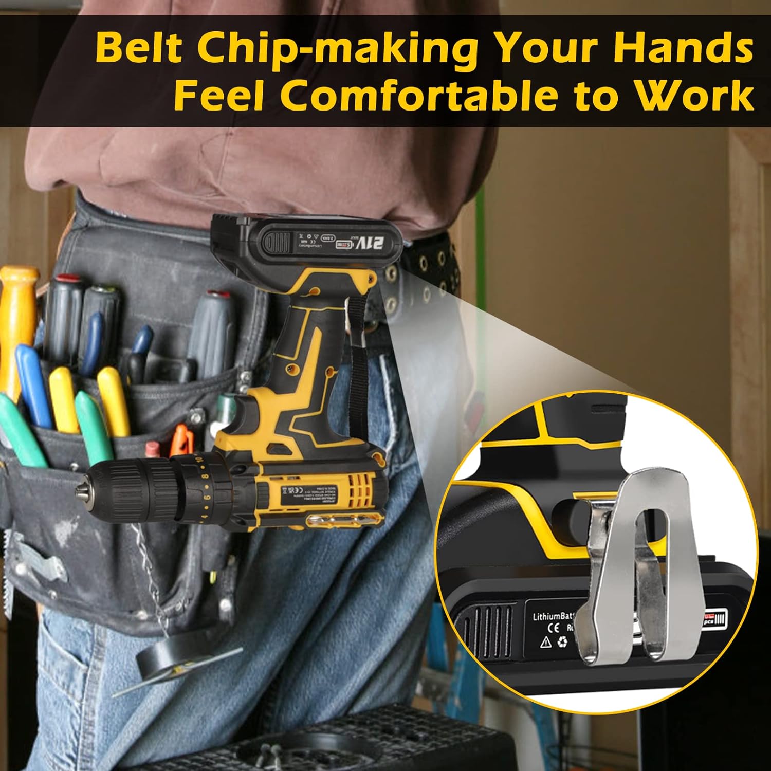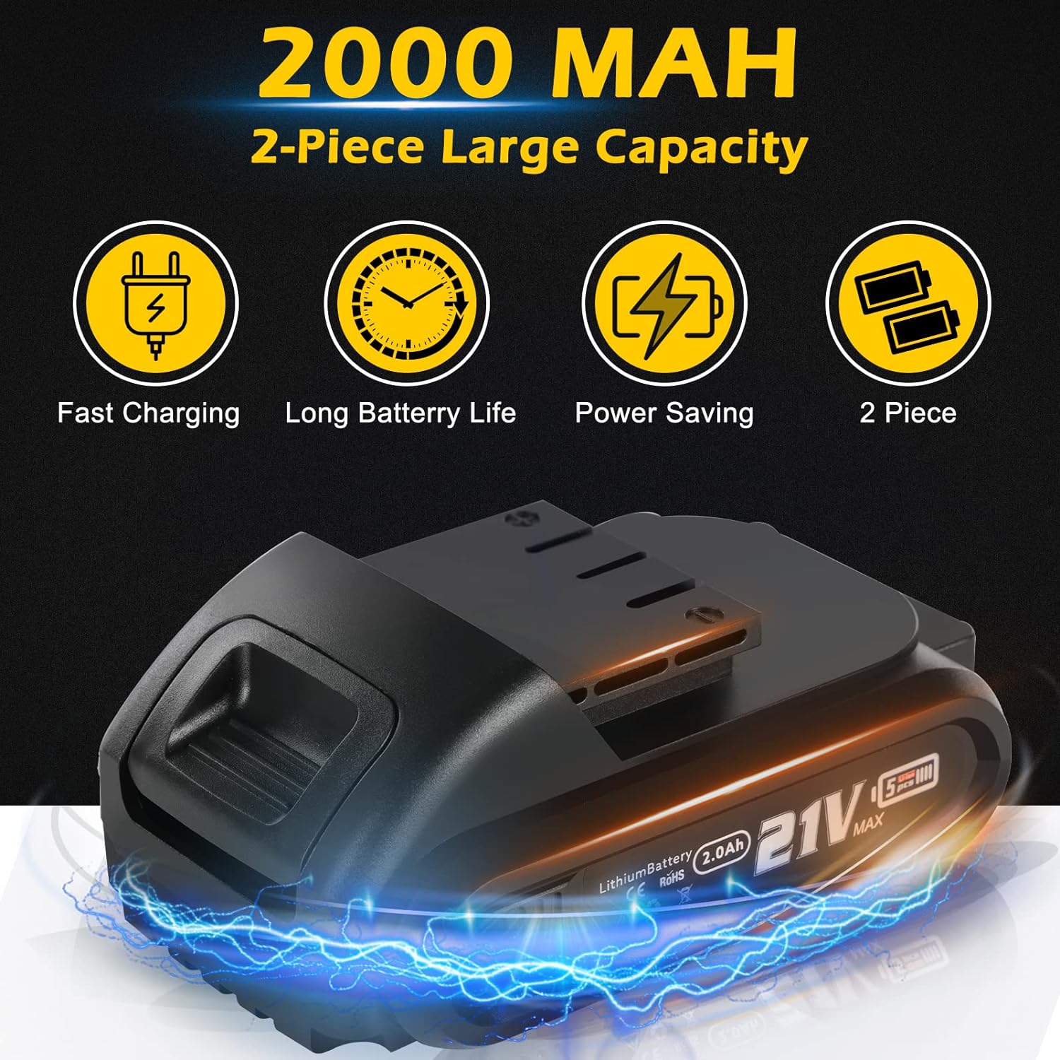 - 【2PCS 5C 2.0Ah Li-ion Batterie】 Cordless drill set comes with two 5C Li-ion batteries, which discharge rate is higher than 3C, discharge current is up to 10A, which can provide strong and stable power. All-copper wire motor prevents motor overload and ensures long life and durability.