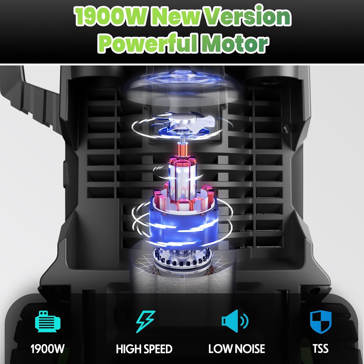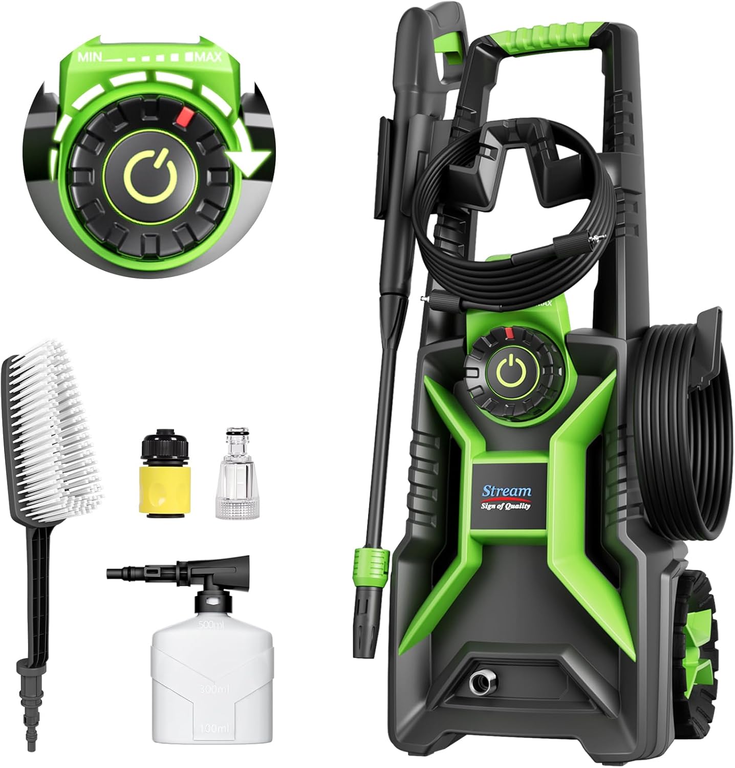 - [Powerful Pressure Washers]Driven by a 1900W motor, Pressure washers deliver up to the max 150bar at 7L/min, combining high pressure and strong flow for cleaning cars, driveways, floors, walls, and windows, making it an essential tool for your cleaning needs.