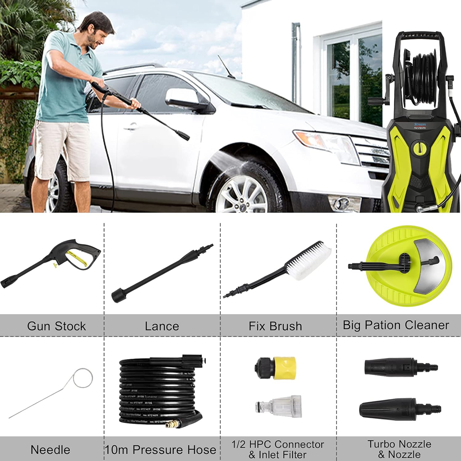 - Powerful 2000W motor generates up to 150Bar /450L/H for maximum cleaning power.