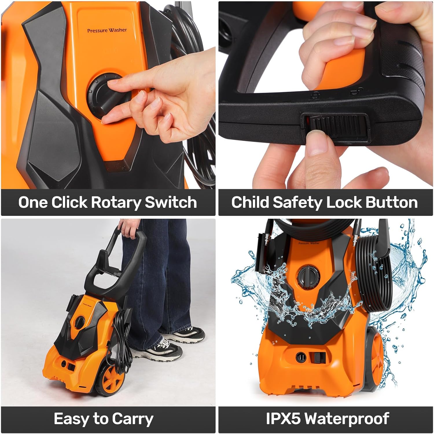 - Safe & Efficient Operation: Includes Total Stop System (TSS) that shuts off the pump when trigger is not engaged. Equipped with a child-lock safety feature on the spray gun to prevent accidental operation.